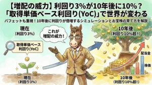 累進配当株を持つ最大のメリット。 それは「精神的な安定」だけではありません。 「YoC(取得単価ベース利回り)の爆発的な上昇」です。