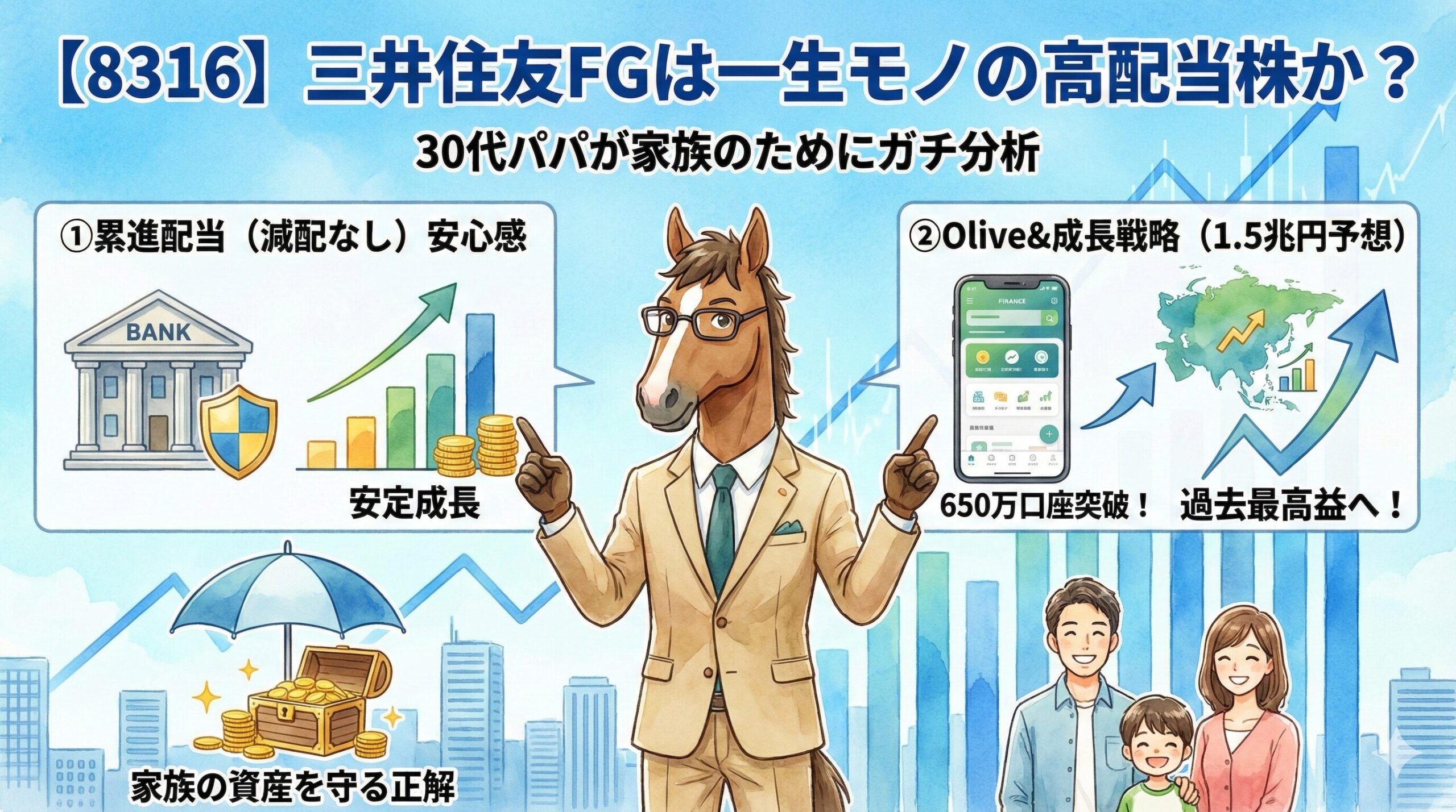 ねぇうまちゃん、見て見て! 僕のポートフォリオ、配当利回りがついに5%を超えたよ! 中身は全部「銀行株」! UFJ、三井住友、みずほ…最強のラインナップでしょ? これで僕の老後は安泰だ〜!