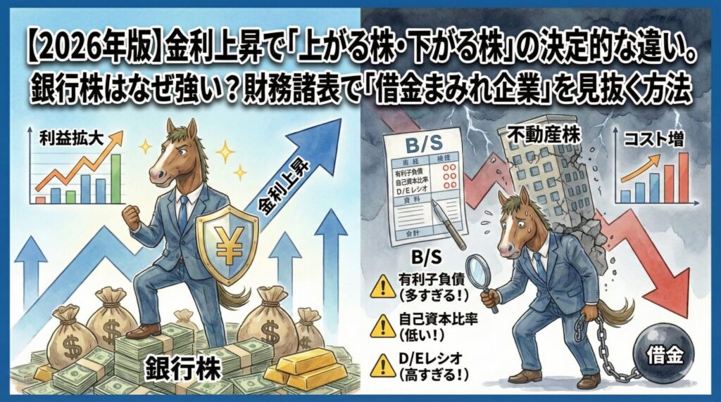 【2026年版】金利上昇で「上がる株・下がる株」の決定的な違い。銀行株はなぜ強い?財務諸表で「借金まみれ企業」を見抜く方法